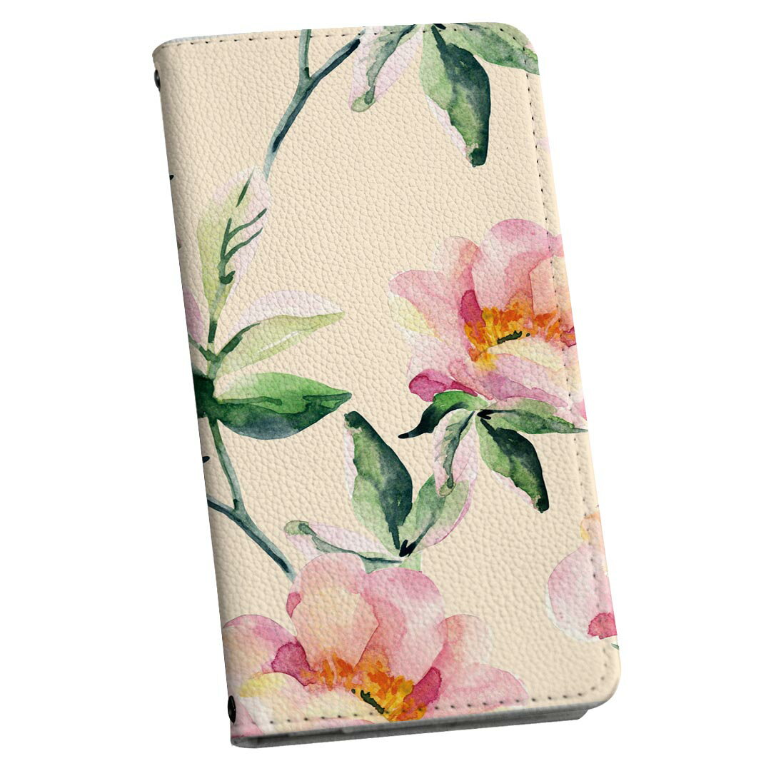AQUOS wish2 / wish 用 SH-51C / SHG06 / A104SH / SH-M20 共通対応 内側プリント 対応 ケース カバー 手帳型 マグネット式 ピタッと閉まる レザーケース カード収納 ポケット 012479 ハイビスカス 花 ピンク