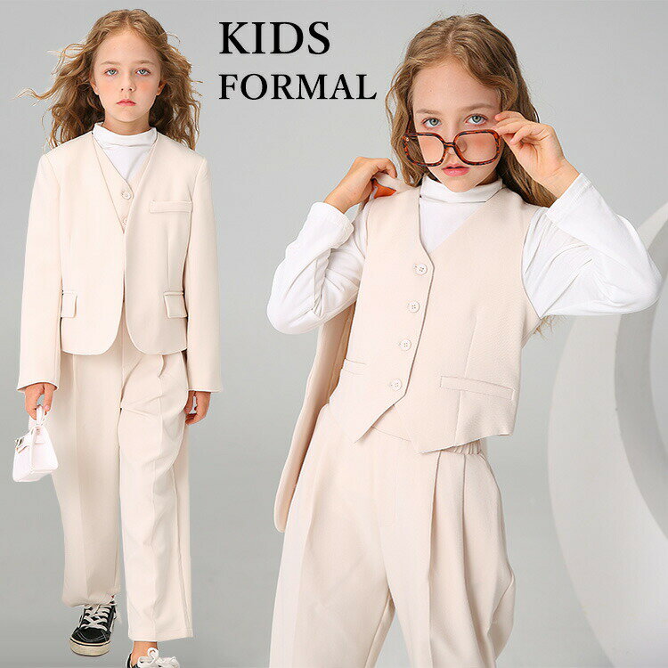 卒業式 パンツスーツ 女の子 制服 韓国 卒服 女の子 ベスト フォーマルスーツ 女の子 ベージュ ピアノ発表会 ベスト 子供服 発表会 セットアップ ジュニア フォーマル 入学式 小学生 学園祭 結婚式 七五三 キッズ 子供スーツ 上下セット 160 大きいサイズ