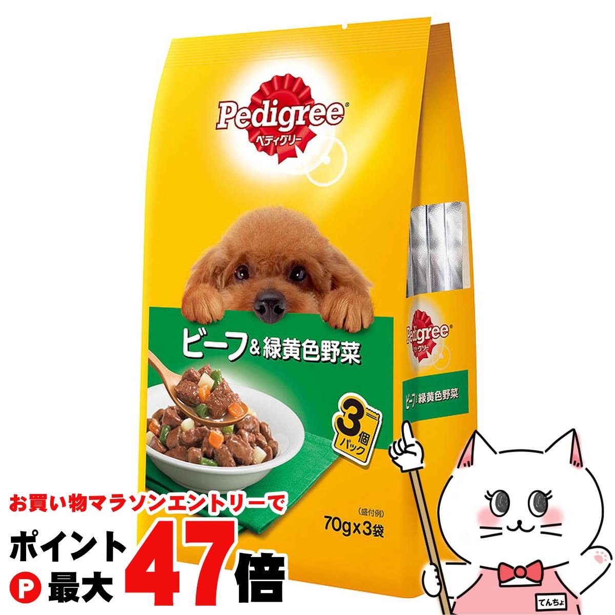 【お買い物マラソン最大47倍】ペディグリー 成犬用 ビーフ&緑黄色野菜 70g×3袋【happiest】【SBT】 (6027200)