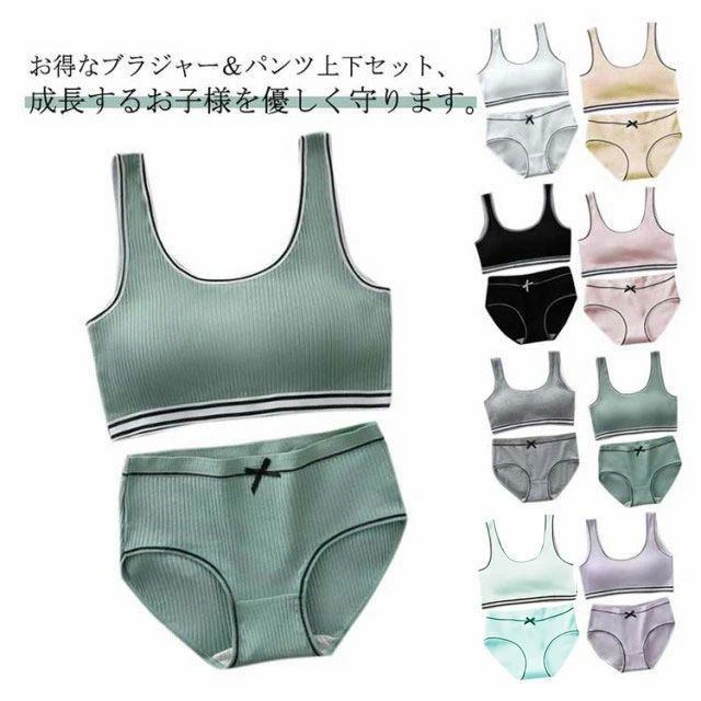 ショーツセット スポーツブラ ジュニアブラジャー シンプル 上下セット 学生 リブ ノンワイヤーブラ 英字ロゴ ジュニア向け フィ
