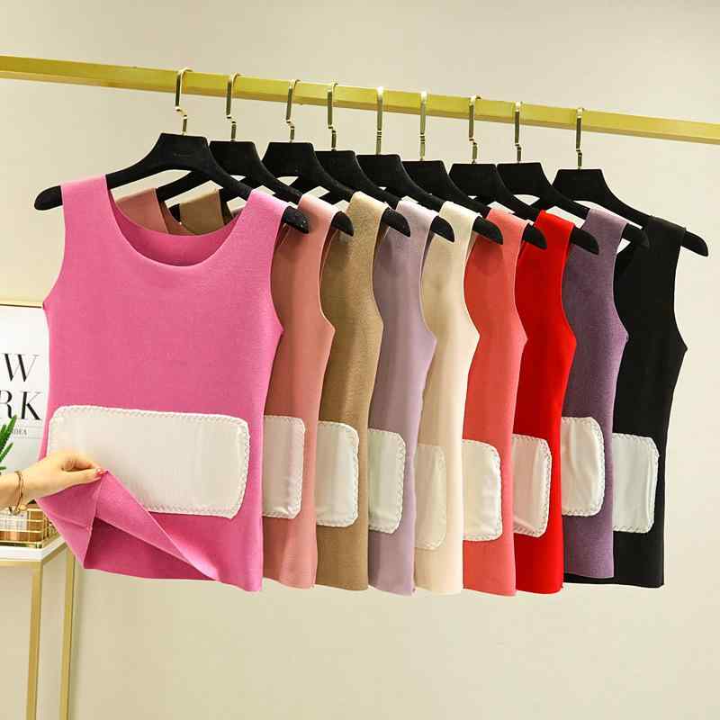 タンクトップ レディース 暖かインナー 接触温感 デコルテがきれいに見えるトップス 背中暖め 無縫製 薄手 ストレッチ 秋冬 ブラック ベージュ レッド ピンク パープル
