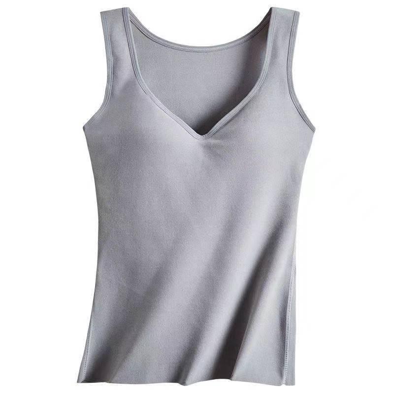 レディース インナー あったか 防寒 Vネック ブラトップ 一体型 カップ付き ベスト 肌色 ベージュ ポリエステル 無地(x2)