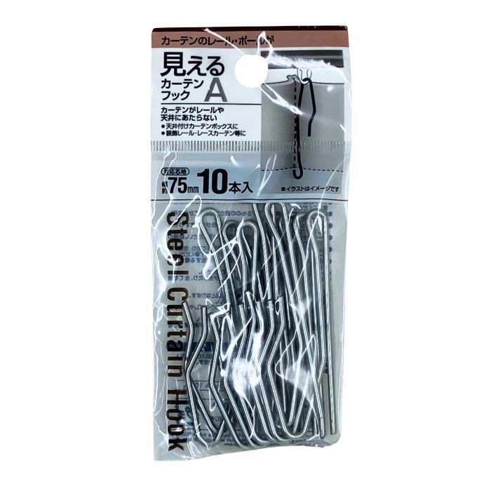 カーテンフック Aタイプ 10個入り 芯地巾 75mm レール・ポールが見える 38-975 セイワプロ