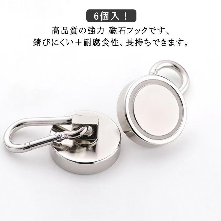 6個入 超強力 マグネット フック カラビナ付磁石 フック取外可能 超強力 垂直耐荷重13/25/42/50/68kg 直径20/25/32/36/42mm 強力 磁石 キッチン/オフィス/業務/浴室/室外/壁掛け用 送料無料