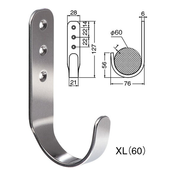 シロクマ フック ステンU形フック6t ST-204 ステンレス XL(60) ソフトミラー