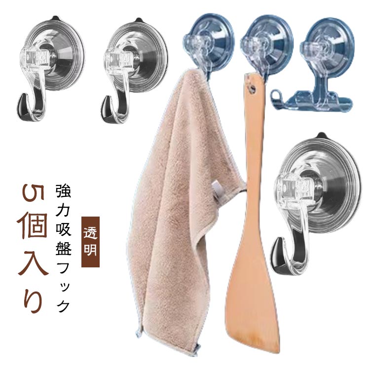リ オフィス キッチン お風呂 浴室 壁を傷つけず 繰り返し使用可能 壁掛けフック 浴室フック 5個入り PET 透明 5個入り ネジ不要