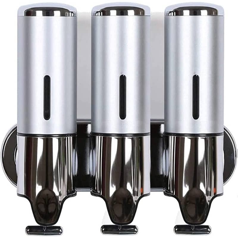 【1500ml 3連】ソープディスペンサー 壁掛け シャンプー ボディーソープ ィーソープ 詰め替え 手動 浴室 洗面所 バスルーム シャワーディスペンサー シルバー
