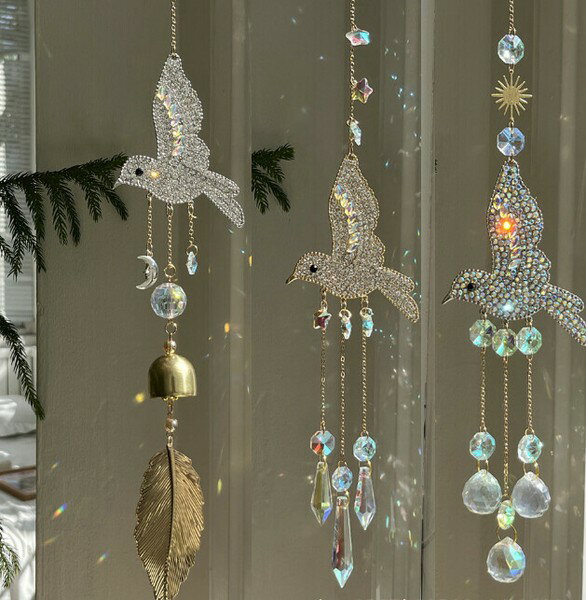 サンキャッチャー モビール 鳥 スワロフスキー風 クリスタル ガラス 風水 開運 インテリア 吊り下げ 飾り 窓辺 キラキラ ギフト プレゼント おしゃれ 北欧 玄関 リビング 光を反射 幸運祈願 全3種類 送料無料