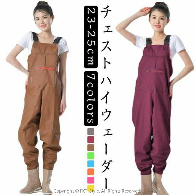 胴長 レディース 水仕事 釣り用 女性用 ウェダー 水中作業 フィッシングウェーダー チェストハイウェーダー 作業靴 胴付き長靴 除雪 作