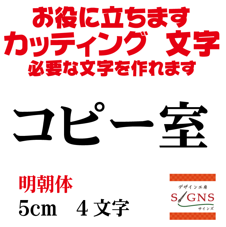 コピー室 カッティングシート 文字 文字シール 切り文字 製作 通販 屋外耐候 販促 集客 売上アップに 看板 案内板 必要な文字を作れます。明朝体 黒 5cm オリジナルグッズ