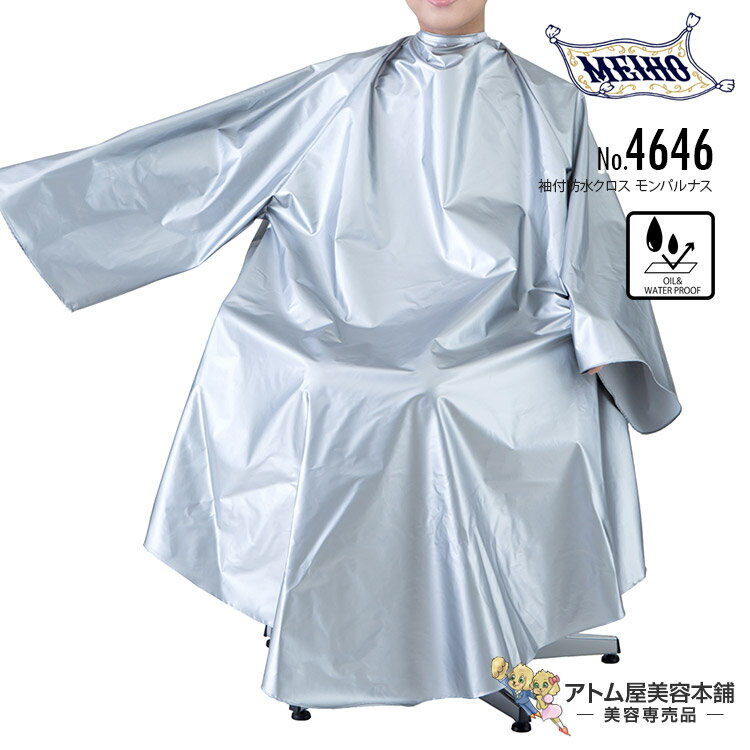 メイホー No.4646 袖付防水クロス モンパルナス 袖つき シャンプー パーマ ヘアダイ 強力防水加工 水もれ 漏れ 薬液 対策 予防 ワイド 大きめ ロング 日本製 業務用 プロ用 美容室 理容室 床屋 業務用 プロ用 サロン バーバー 美容専売 サロン専売 まほうの仕立屋 MEIHO