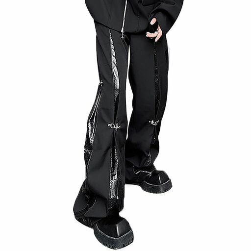[TOWYYO]メンズズボンロングパンツPUレザー異素材切り替え無地飾り付け高見ストレートダーク系原宿系渋谷系Y2Kサブカル地雷病みかわいい春秋通年日常