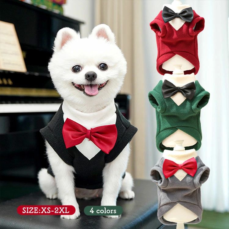 ペッ ペット服 リード付き 紳士 犬 重ね着風 蝶ネクタイ 結婚式 タキシード 猫 ペットウエア ペットスーツ タキシード ペット用