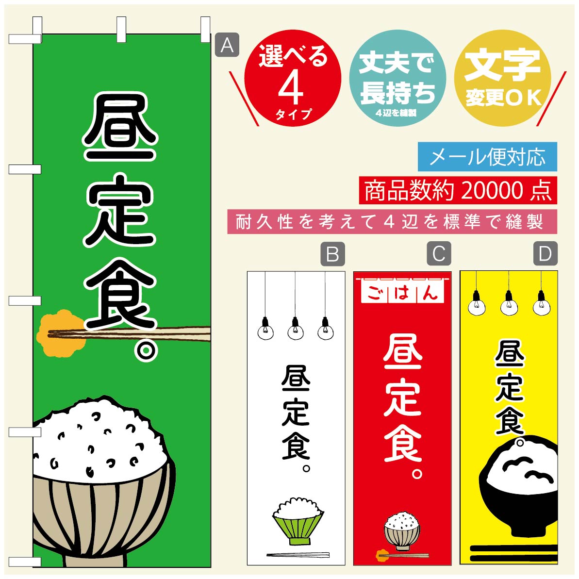 のぼり旗 ランチのぼり 寸法60×180 丈夫で長持ち【四辺標準縫製】のぼり旗 送料無料【3980円以上で】のぼり旗 オリジナル/文字変更可/のぼり旗 定食のぼり/のぼり旗 ごはんのぼり