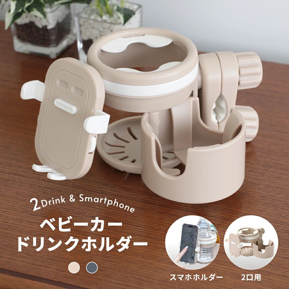 【正規品】ベビーカー ドリンクホルダー ベビーカー用 2in1 スマホ対応 マグホルダー 哺乳瓶ホルダー2ドリンクホルダー スマホ ベビー用 スマホスタンド 哺乳瓶 ベビーカーバッグ バギー バギー対応 ドリンク 折り畳み 軽量 360度回転 取付簡単 プレゼント ギフト