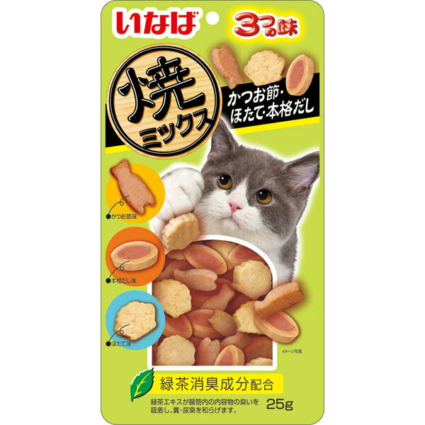 いなばペットフード 焼ミックス3つの味 かつお節・ほたて・本格だし 25g QSC-123 いなば イナバ INABA INABA 猫 おやつ 間食 かつお節・ほたて・本格だし QSC-123
