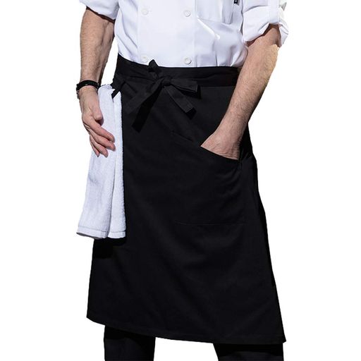 [囲物誌]エプロンメンズ無地前掛け腰下エプロン男女兼用シェフ店員台所調理用レストラン喫茶店(ブラック)L
