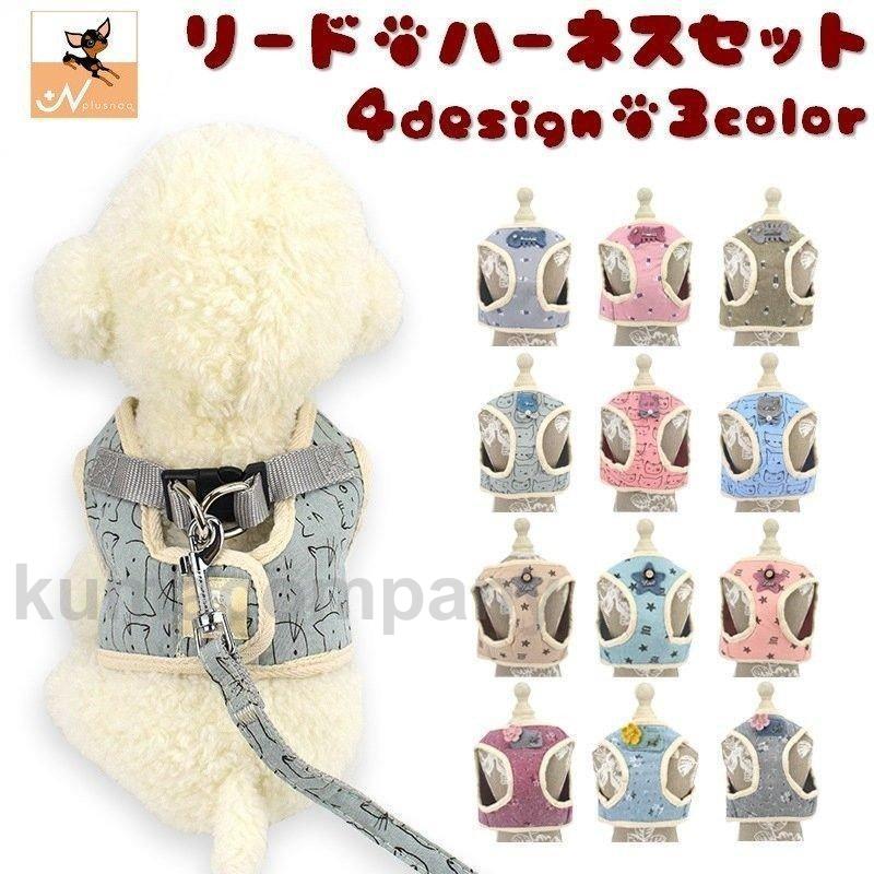 ハーネスリードセット 2点セット 犬用 猫用 胴輪 ハーネス リード 散歩紐 お散歩グッズ 簡単装着 メッシュ ベスト 胸当て ペット用 おしゃれ か