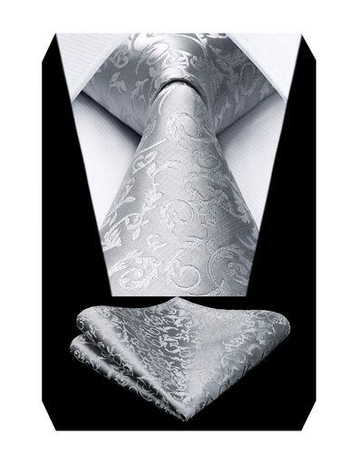 [Enlision]シルバーネクタイセットメンズペイズリーポケットチーフ花柄ビジネスおしゃれEF-02