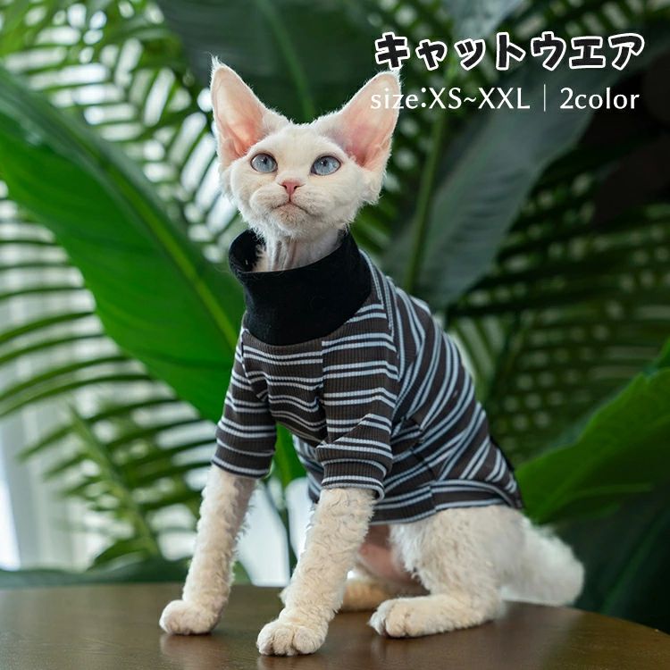 アビシニ スフィンクス猫 デボンレックス 猫服 犬服 ハイネック おしゃれ インスタ映え ルームウエア 肌着 柔らかい ストライプ
