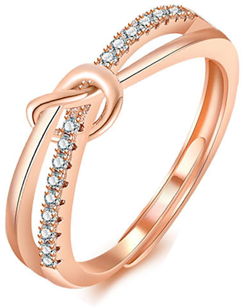 【送料無料】[GEJ-Tech] レディース ノットリング シルバー 指輪 フリーサイズ(11号-18号) リング ジルコニア ハーフエタニティ 色:ピンクゴールド