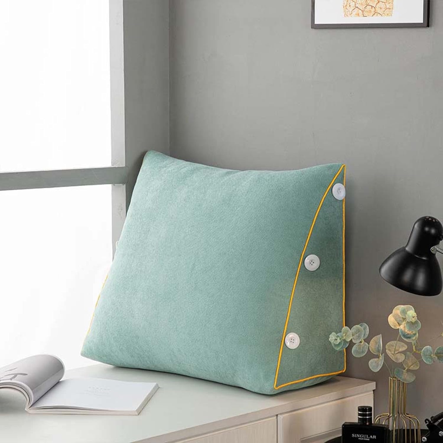 三角形 読書用クッション 大型クッション カラー ヘッドボードの背もたれ 姿勢サポート ウェッジ枕 ソファベッド 取り外し可能なカバー付き おしゃれ かわいい 北欧 コンパクト ふわふわ 150*12